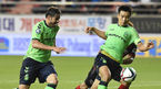 [OSEN=포항, 백승철 기자] 3일 오후 경북 포항시 포항스틸야드에서 열린 '현대오일뱅크 K리그 클래식 2015' 포항 스틸러스와 전북 현대의 경기 후반 이동국과 에두가 문전 돌파를 시도하고 있다. 전북 현대가 포항 스틸러스가 빈공