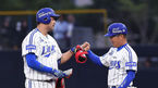[OSEN=포항, 백승철 기자] 4일 오후 경북 포항시 포항야구장에서 열린 '2015 타이어뱅크 KBO 리그' 삼성 라이온즈와 롯데 자이언츠의 경기 3회말 2사 1루 채태인이 1타점 2루타를 치고 김평호 코치와 하이파이브를 하고 있다. 삼성은