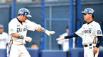 [OSEN=창원, 민경훈 기자] 7일 오후 창원시 마산 야구장서 열린 '2015 타이어뱅크 KBO 리그' NC 다이노스와 삼성 라이온스의 경기, 5회말 1사 주자 3루 NC 이호준이 중견수 왼쪽 1타점 적시타를 날린 후 1루에서 전준호 코치와 하이파이