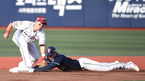 [OSEN=목동, 김경섭 기자] 7일 오후 서울 목동야구장에서 '2015 타이어뱅크 KBO 리그' 넥센 히어로즈와 두산 베어스의 경기가 열렸다. 2회초 1사 주자 1루 1루주자 두산 정진호가 허경민의 타석에 2루도루를 성공시키고 있다. 쾌조의
