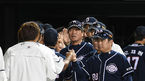 [OSEN=대전, 이대선 기자] 7일 오후 대전 한화생명이글스파크에서 '2015 타이어뱅크 KBO 리그' 한화 이글스와 kt wiz의 경기가 열렸다. 9회초 1사 2루에서 한화 윤규진이 kt 하준호를 플라이로 처리하고 허도환과 이야기를 나누고 있다.