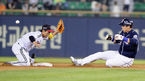 [OSEN=잠실,박준형 기자] 9일 오후 서울 잠실구장에서 열린 '2015 타이어뱅크 KBO리그' LG 트윈스와 두산 베이스의 경기,6회초 무사 1루 두산 로메로의 삼진아웃때 1루 주자 김현수가 도루성공하고 있다 루카스는 이날 두산과의 경기