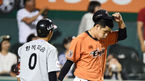 [OSEN=잠실, 이대선 기자] 12일 오후 서울 잠실야구장에서 '2015 타이어뱅크 KBO리그' 두산 베어스와 NC 다이노스의 경기가 열렸다. 7회말 2사 1,2루에서 두산 홍성흔이 중전 적시타를 치고 환호하고 있다. 두산은 마야를 NC와의 경기에