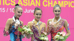 [OSEN=제천, 백승철 기자] 12일 오후 충북 제천시 세명대학교 체육관에서 열린 '제7회 아시아 리듬체조 선수권대회'에서 볼 부문 금메달을 차지한 손연재가 나자렌코바 엘리자베타(은메달), 아시르바예바 사비나(동메달)와 시상대