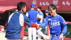 [OSEN=광주, 김경섭 기자] 12일 오후 광주-기아 챔피언스필드에서 열린 '2015 타이어뱅크 KBO 리그' KIA 타이거즈와 삼성 라이온즈의 경기, 경기시작전 삼성 이승엽이 KIA 박흥식 코치와 장난을 치고 있다. 지난 6일 마산 NC전 이후 5연