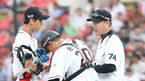 [OSEN=대전, 지형준 기자] 14일 오후 대전 한화생명이글스파크에서 '2015 타이어뱅크 KBO리그' 한화 이글스와 LG 트윈스의 경기가 열렸다. 3회말 2사 만루에서 LG 루카스가 한화 김태균의 투수 강습 타구를 처리하며 허리 통증을 호소