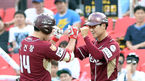[OSEN=수원, 곽영래 기자] 14일 수원 케이티 위즈파크에서 '2015 타이어뱅크 KBO 리그' kt 위즈와 넥센 히어로즈의 경기가 열렸다. 4회초 2사 1,3루 넥센 서건창이 적시타를 때린 뒤 정수성 코치와 하이파이브를 하고 있다. 넥센 히어로