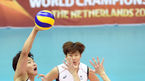 [OSEN=수원, 곽영래 기자] 14일 오후 수원 실내체육관에서 열린 '2015 월드리그 국제남자배구' 한국과 일본의 경기, 일본의 시미즈 쿠니히로가 강타를 날리고 있다. 1세트 최홍석이 블로킹을 시도하고 있다. 대표팀은 이번에 국내에