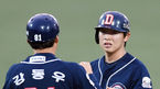 [OSEN=대구,박준형 기자] 18일 오후 대구구장서 열린 ‘2015 타이어뱅크 KBO 리그’ 삼성 라이온즈와 두산 베어스의 경기, 3회초 1사 2루 정수빈이 동점 1타점 2루타를 날린뒤 강동우 코치와 하이파이브를 하고 있다. 이날 삼성과 두