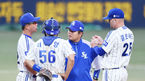 [OSEN=대구,박준형 기자] 18일 오후 대구구장서 열린 ‘2015 타이어뱅크 KBO 리그’ 삼성 라이온즈와 두산 베어스의 경기, 3회초 3타자 연속 2루타로 동점을 허용한 삼성 클로이드가 김태한 투수코치와 마운드서 이야기를 나누고 있