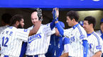 [OSEN=대구,박준형 기자] 18일 오후 대구구장서 열린 ‘2015 타이어뱅크 KBO 리그’ 삼성 라이온즈와 두산 베어스의 경기, 1회말 1사 삼성 구자욱이 선취 솔로홈런을 날리고 동료들의 축하를 받고 있다. 이날 삼성과 두산은 클로이