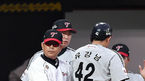 [OSEN=마산, 이대선 기자] 24일 오후 경남 창원 마산야구장에서 '2015 타이어뱅크 KBO 리그' NC 다이노스와 KIA 타이거즈의 경기가 열렸다. 4회초 2사에서 NC 손민한이 자신의 투구에 맞은 KIA 이범호에게 사과를 하고 있다. NC와 KIA는 양