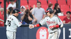 [OSEN=수원, 김경섭 기자] 24일 오후 경기 수원 kt위즈파크에서 '2015 타이어뱅크 KBO 리그' kt 위즈와 LG 트윈스의 경기, 4회초 2사 2루 LG 정성훈이 2점 홈런을 치고 유지현 3루코치와 기쁨을 나누고 있다. LG 트윈스 우완투수 임정우가