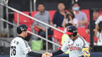 [OSEN=수원, 김경섭 기자] 24일 오후 경기 수원 kt위즈파크에서 '2015 타이어뱅크 KBO 리그' kt 위즈와 LG 트윈스의 경기, 4회초 2사 2루 LG 정성훈이 2점 홈런을 치고 히메네스와 기쁨을 나누고 있다. LG 트윈스 우완투수 임정우가 올 시
