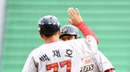 [OSEN=잠실, 지형준 기자] 24일 오후 서울 잠실야구장에서 '2015 타이어뱅크 KBO 리그' 두산 베어스와 SK 와이번스의 경기가 열렸다. 2회초 2사 2루에서 SK 김성현이 1타점 적시타를 날리고 백재호 코치와 하이파이브를 하고 있다. 두산