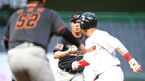 [OSEN=인천, 곽영래 기자] 26일 인천 SK 행복드림구장에서 '2015 타이어뱅크 KBO리그' SK 와이번스와 한화 이글스의 경기가 열렸다. 3회말 2사 1루 한화 권용관이 런다운에 걸린 SK 나주환을 잡아내고 있다. SK는 에이스 김광현을 선발