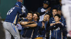 [OSEN=잠실, 김경섭 기자] 26일 오후 서울 잠실야구장에서 열린 '2015 타이어뱅크 KBO 리그' LG 트윈스와 NC 다이노스의 경기, 9회초 NC 선두타자 나성범이 솔로홈런을 치고 더그아웃에서 기쁨을 나누고 있다. 3연승을 노리는 LG 트윈스