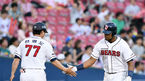 [OSEN=잠실, 김경섭 기자] 1일 오후 서울 잠실야구장에서 열린 '2015 타이어뱅크 KBO 리그' 두산 베어스와 LG 트윈스의 경기, 3회말 2사 1,2루 두산 로메로가 2점홈런을 치고 전형도 3루코치와 기쁨을 나누고 있다. 두산과 LG는 이틀의