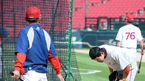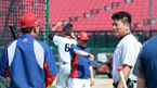 [OSEN=광주, 민경훈 기자] 1일 오후 광주 기아 챔피언스 필드에서 '2015 타이어뱅크 KBO 리그' KIA 타이거즈와 한화 이글스의 경기가 열릴 예정인 가운데 양팀 훈련시간에 KIA 김기태 감독이 한화 이용규에게 배트로 치며 말을 걸고