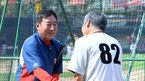 [OSEN=광주, 민경훈 기자] 1일 오후 광주 기아 챔피언스 필드에서 '2015 타이어뱅크 KBO 리그' KIA 타이거즈와 한화 이글스의 경기가 열릴 예정인 가운데 양팀 훈련시간에 KIA 김기태 감독이 한화 후루쿠보 코치와 악수를 나누며 환하