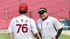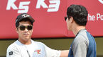 [OSEN=광주, 민경훈 기자] 2일 오후 광주 기아 챔피언스 필드에서 '2015 타이어뱅크 KBO 리그' KIA 타이거즈와 한화 이글스의 경기가 열릴 예정인 가운데 양 팀 훈련 시간에 한화 이종환이 KIA 조계현 코치와 즐겁게 얘기를 나누고 있
