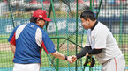 [OSEN=광주, 민경훈 기자] 2일 오후 광주 기아 챔피언스 필드에서 '2015 타이어뱅크 KBO 리그' KIA 타이거즈와 한화 이글스의 경기가 열릴 예정인 가운데 양 팀 훈련 시간에 한화 이종환이 친정팀KIA 박흥식 코치와 악수를 나누고 있