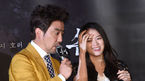 [OSEN=정송이 기자] 배우 류승룡과 천우희가 9일 오후 서울 왕십리 CGV에서 진행된 영화 '손님' 언론시사회에 참석해 마이크 테스트를 하고 있다. '독일 하멜른의 피리 부는 사나이'에서 모티브를 차용한 영화 '손님'은 1950년대 지