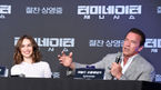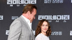 [OSEN=지형준 기자] 2일 오전 서울 역삼동 리츠칼튼호텔 그랜드볼룸에서 영화 '터미네이터:제니시스'(이하 '터미네이터5') 내한 기자회견이 열렸다. 아놀드 슈왈제네거, 에밀리아 클라크가 기자회견을 마치고 포토타임을 준비하