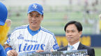 [OSEN=대구, 민경훈 기자] 3일 오후 대구 대구시민운동장 야구장에서 열린 '2015 타이어뱅크 KBO 리그' 삼성 라이온즈와 LG 트윈스의 경기가 열릴 예정인 가운데, 경기 전 삼성 이승엽 400홈런 시상식이 진행되고 있다. 이승엽이 김인
