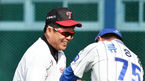 [OSEN=대구, 민경훈 기자] 3일 오후 대구 대구시민운동장 야구장에서 열린 '2015 타이어뱅크 KBO 리그' 삼성 라이온즈와 LG 트윈스의 경기가 열릴 예정인 가운데, 양 팀 훈련 시간에 LG 양상문 감독과 삼성 류중일 감독이 악수와 포옹