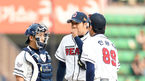 [OSEN=잠실, 이대선 기자] 4일 오후 서울 잠실야구장에서 '2015 타이어뱅크 KBO리그' 두산 베어스와 넥센 히어로즈의 경기가 열렸다. 2회초 1사 1루에서 두산 장원준이 마운드를 방문한 한용덕 코치와 이야기를 나누고 있다. 넥센은