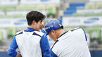 [OSEN=대구, 민경훈 기자] 4일 오후 대구 대구시민운동장 야구장에서 '2015 타이어뱅크 KBO 리그' 삼성 라이온즈와 LG 트윈스의 경기가 열릴 예정인 가운데 양팀 훈련 시간에 삼성 류중일 감독이 임창용에게 투구 전 포즈를 취하며