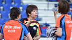 [OSEN=인천, 백승철 기자] 4일 오후 인천광역시 남동체육관에서 열린 '2015 코리아오픈 국제 탁구대회' 여자복식 준결승에서 양하은 선수(오른쪽)의 어머니인 김인순 코치가 지시를 하고 있다. 코리아오픈국제탁구대회는 지난해부
