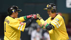 [OSEN=후쿠오카(일본), 김경섭 기자] 7일 오후 일본 후쿠오카 야후오크돔에서 소프트뱅크 호크스와 라쿠텐 골든이글스의 경기, 2회말 무사 1루 소프트뱅크 이대호가 투런을 치고 1루주자 우치카와와 홈에서 기쁨을 나누고 있다.