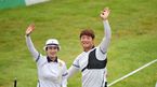 [OSEN=광주, 서정환 기자] 한국 여자양궁의 간판스타 기보배(27, 광주시청)와 이승윤(20, 코오롱)이 금메달을 합작했다. 기보배와 이승윤은 8일 오후 광주국제양궁장에서 열린 양궁 리커브 혼성전에서 대만의 웨이춘헝, 탄야팅 조