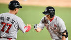 [OSEN=대구, 지형준 기자] 9일 오후 대구야구장에서 '2015 타이어뱅크 KBO 리그' 삼성 라이온즈와 SK 와이번스의 경기가 열렸다. 6회초 무사 2,3루에서 SK 이대수가 대타로 나서 선취 적시타를 날리고 백재호 코치와 주먹을 맞대고 있