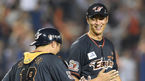[OSEN=잠실, 백승철 기자] 10일 오후 서울 잠실구장에서 열린 '2015 타이어뱅크 KBO 리그' LG 트윈스와 한화 이글스의 경기 종료 후 윤규진과 허도환이 하이파이브를 하고 있다. 한화 이글스가 권용관의 맹타와 윤규진의 호투로 2연패