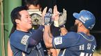 [OSEN=광주,박준형 기자] 10일 오후 광주-기아 챔피언스필드에서 열린 2015 광주 유니버시아드 야구 준결승전 한국과 대만의 경기, 3회초 한국 선두타자 김성훈이 안타를 날리고 1루코치와 하이파이브를 하고 있다. 한국대표팀은