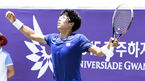 [OSEN=광주, 박준형 기자]10일 오후 광주 진월국제코트에서 열린 광주 하계유니버시아드 테니스 남자복식 준결승에 출전한 정현-남지성 복식조가 리신한-벙셴인(대만)을 2-0(6-4 7-6)으로 물리치고 결승에 올랐다. 정현-남지성의 결
