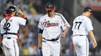 [OSEN=잠실, 백승철 기자] 10일 오후 서울 잠실구장에서 열린 '2015 타이어뱅크 KBO 리그' LG 트윈스와 한화 이글스의 경기 9회초 무사 만루 권용관을 몸에 맞는 볼로 내보내고 실점을 허용한 봉중근이 아쉬운 표정으로 마운드에 서