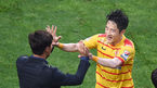 [OSEN=울산, 지형준 기자] 11일 오후 울산월드컵경기장에서 2015년 현대오일뱅크 K리그 클래식 울산 현대와 광주FC의 22라운드 경기가 열렸다. 전반 광주 김호남이 선제골을 넣고 남기일 감독과 기뻐하고 있다. 10위 울산(승점 23점)