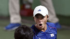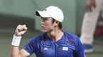 [OSEN=광주, 박준형 기자]11일 오후 광주 염주전천후코트장서 열린 광주 하계유니버시아드 테니스 남자복식 결승전 한국(정현-남지성)과 영국( 대런 월쉬-조지프 샐리스버리)의 경기,1세트 남지성이 로브로 득점을 올린뒤 환호하