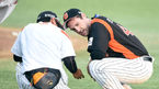 [OSEN=청주, 이대선 기자] 15일 오후 청주야구장에서 '2015 타이어뱅크 KBO 리그' 한화 이글스와 롯데 자이언츠의 경기가 열렸다. 1회말 2사에서 한화 김태균의 타구를 맞은 롯데 린드블럼이 김태균과 이야기를 나누고 있다. 올해 4연