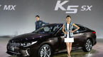 [OSEN=백승철 기자] 15일 오전 서울 삼성동 코엑스에서 열린 기아차 신형 K5 출시행사에서 K5 MX와 SX모델의 디자인을 결합한 차량이 공개되고 있다. 5년 만에 새로운 모습으로 탄생한 신형 K5는 디자인과 파워트레인의 선택 폭 확대,