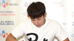 [OSEN=정송이 기자] 15일 오후 서울 영등포점 홈플러스에서 진행된 '손호준과 함께하는 연어 즐기기' 행사에 참석한 손호준이 사인을 하고 있다. 손호준은 이 날 행사에서 팬들에게 CJ알래스카연어를 활용한 간단한 요리를 소개하