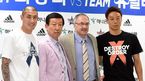[OSEN=지형준 기자] 6년만에 격투기 복귀전을 치르는 최홍만이 16일 오후 서울 로드FC 압구정짐에서 공개훈련및 기자회견을 가졌다. 최무배가 포토타임을 하고 있다. '로드FC 024 IN JAPAN'은 오는 25일 일본 도쿄 아리아케 콜로세움에