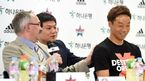 [OSEN=지형준 기자] 6년만에 격투기 복귀전을 치르는 최홍만이 16일 오후 서울 로드FC 압구정짐에서 공개훈련및 기자회견을 가졌다. 정문홍 로드FC 대표가 질문에 답을 하고 있다. '로드FC 024 IN JAPAN'은 오는 25일 일본 도쿄 아리아