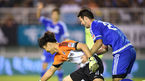[OSEN=안산, 지형준 기자] 17일 오후 경기도 안산 와스타디움에서 '2015 하나은행 K리그 올스타전 - 팀 최강희 vs 팀 슈틸리케'가 열렸다. 전반 팀 최강희의 요니키가 팀 슈틸리케의 권순태 골키퍼를 잡아 끌고 있다. 이번 올스타전에