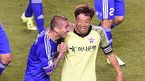 [OSEN=안산, 최규한 기자] 17일 오후 경기도 안산 와스타디움에서 열리는 '2015 하나은행 K리그 올스타전 - 팀 최강희 vs 팀 슈틸리케' 경기가 열렸다. 전반 종료 직후 차두리와 염기훈이 인사를 나누고 있다. 이번 올스타전에는 K리