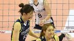 [OSEN=청주, 정송이 기자] 19일 오후 충북 청주시 서원구 사직동 청주실내체육관에서 열린 2015 청주·kOVO컵 프로배구대회 결승전 현대건설과 IBK기업은행의 경기, 3세트 계속되는 득점에 현대건설 선수들이 기뻐하고 있다. /ouxou@ose